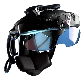 SkyLens uses a head-harnessed, monochrome, visor display, augmenting the operator’s vision with HUD symbology, as well as optional SVS, EVS-4000, or CVS imagery. SkyLens’ design allows operators to wear prescription eyeglasses and to use a standard aviation headset.