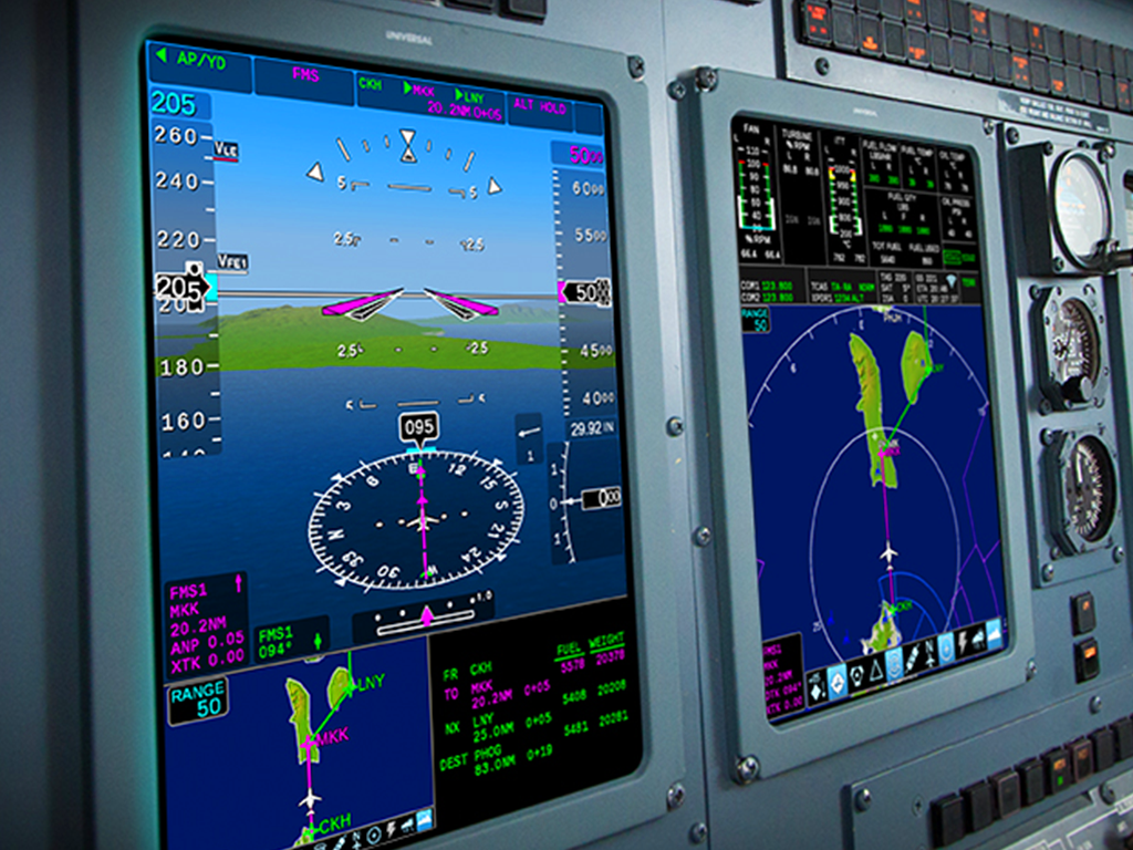 InSight Integrated Flight Display system is the perfect fit for a modernized flight deck, so you can fly with enhanced situational awareness, safety, and sustainability. Universal glass cockpit upgrades present critical information across versatile, high-resolution flight displays so pilots can make better, faster, more fully informed decisions.