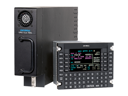 Display and user control is provided through the 4-inch or 5-inch FPCDU. A Multi-functional Control Display Unit (MCDU) is specially tailored for airline or special mission operations. Universal’s FPCDUs feature graphics capabilities and incorporate the latest technology in Active Matrix Liquid Crystal color Displays (AMLCD). They feature the highest contrast, lowest reflection and greatest horizontal and vertical viewing angles available, and offer superb sunlight readability. Unique parallax control is also provided. The system uses two character sizes and line graphics to enhance data recognition.