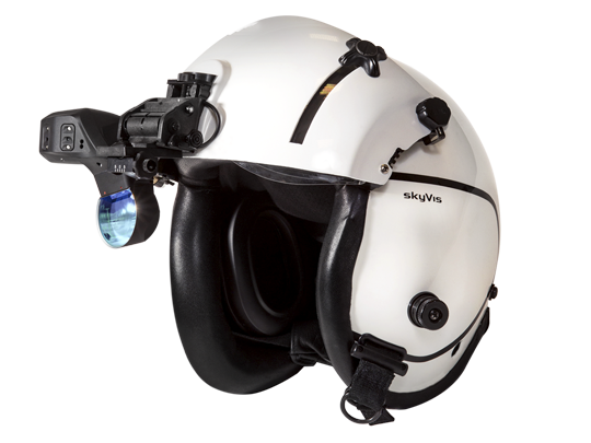 The SkyVis Helmet-Mounted Display (HMD) offers the latest in commercially certifiable Line-Of-Sight (LOS) technology. It includes day, night and Night Vision Goggle (NVG) capabilities with enhanced safety for ‘round-the-clock’ mission support for SAR, EMS, parapublic, offshore, and day-to-day utility operators. The system enables “eyes out” operation during all phases of flight and an unparalleled view of the outside world with aircraft, mission, terrain, flight, obstacle, and navigation data.